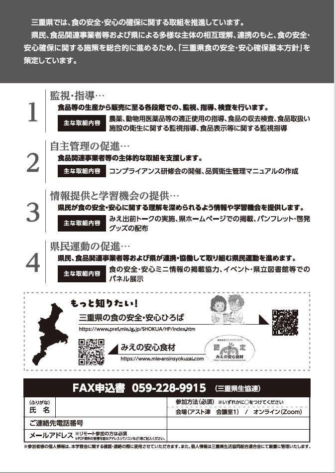 参加申し込み:三重県生活協同組合連合会が承ります。