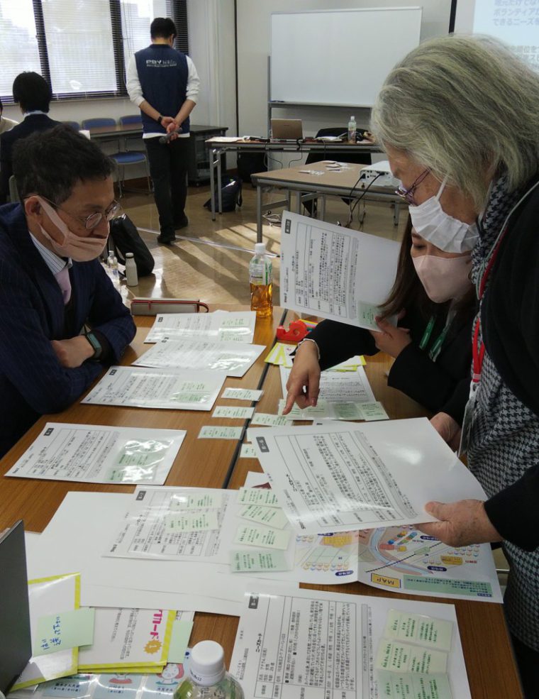 参加者は、発災3日後の災害VC立ち上げ初日と2週間後の3連休の初日という設定の中、災害VCの運営者の一人としてチームの仲間とともに、被災者のニーズに沿うようボランティア希望者の情報とのマッチングに取り組みました。