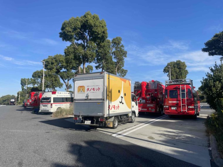 三重県各地から駆け付けた消防車両とともに、頼もしい車両姿です。