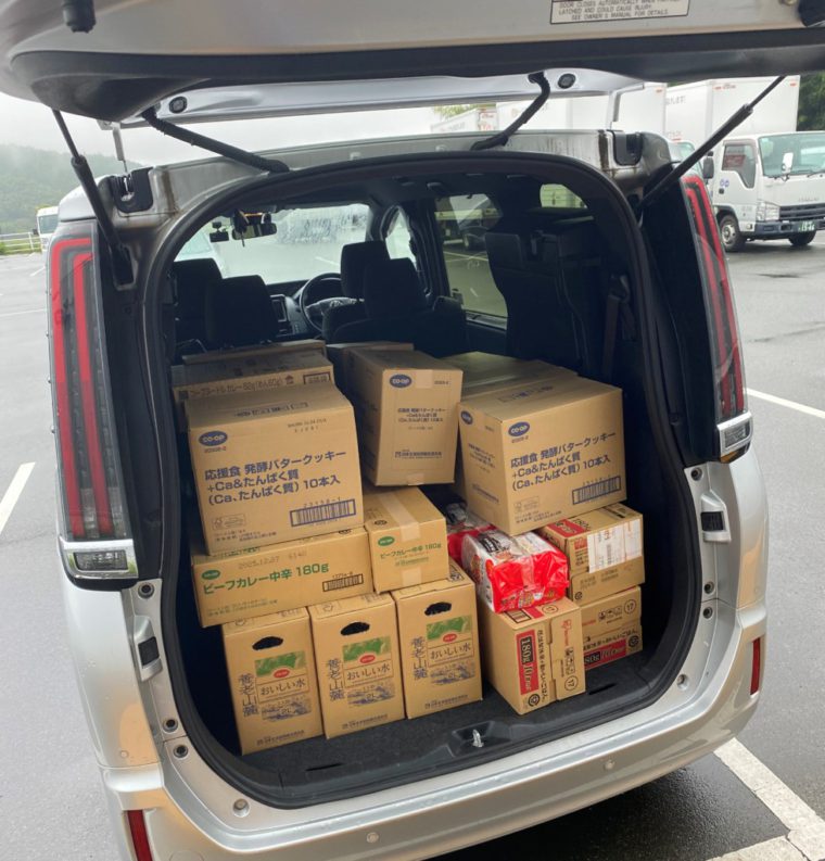 11月中部ブロック合同訓練にむけ、生協コープみえの”タノモット”のトラックで、60人分の食料等が届けられました。
